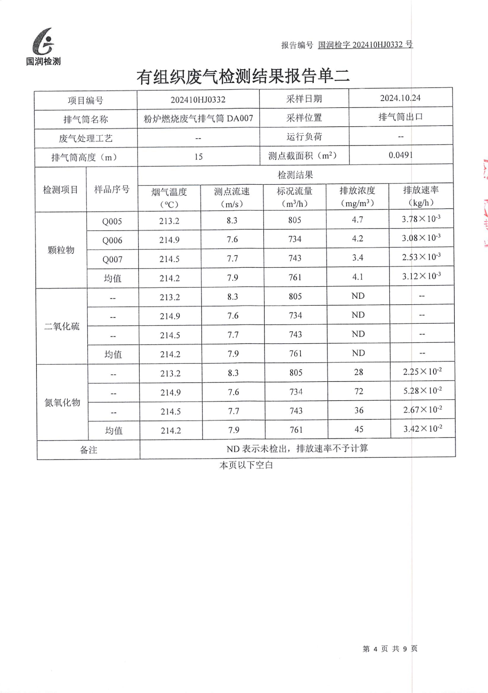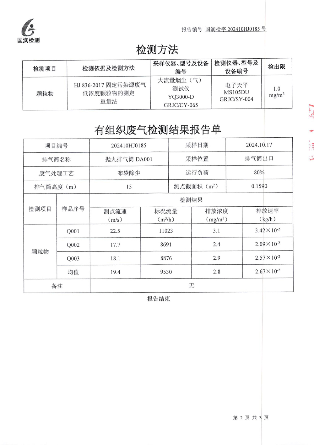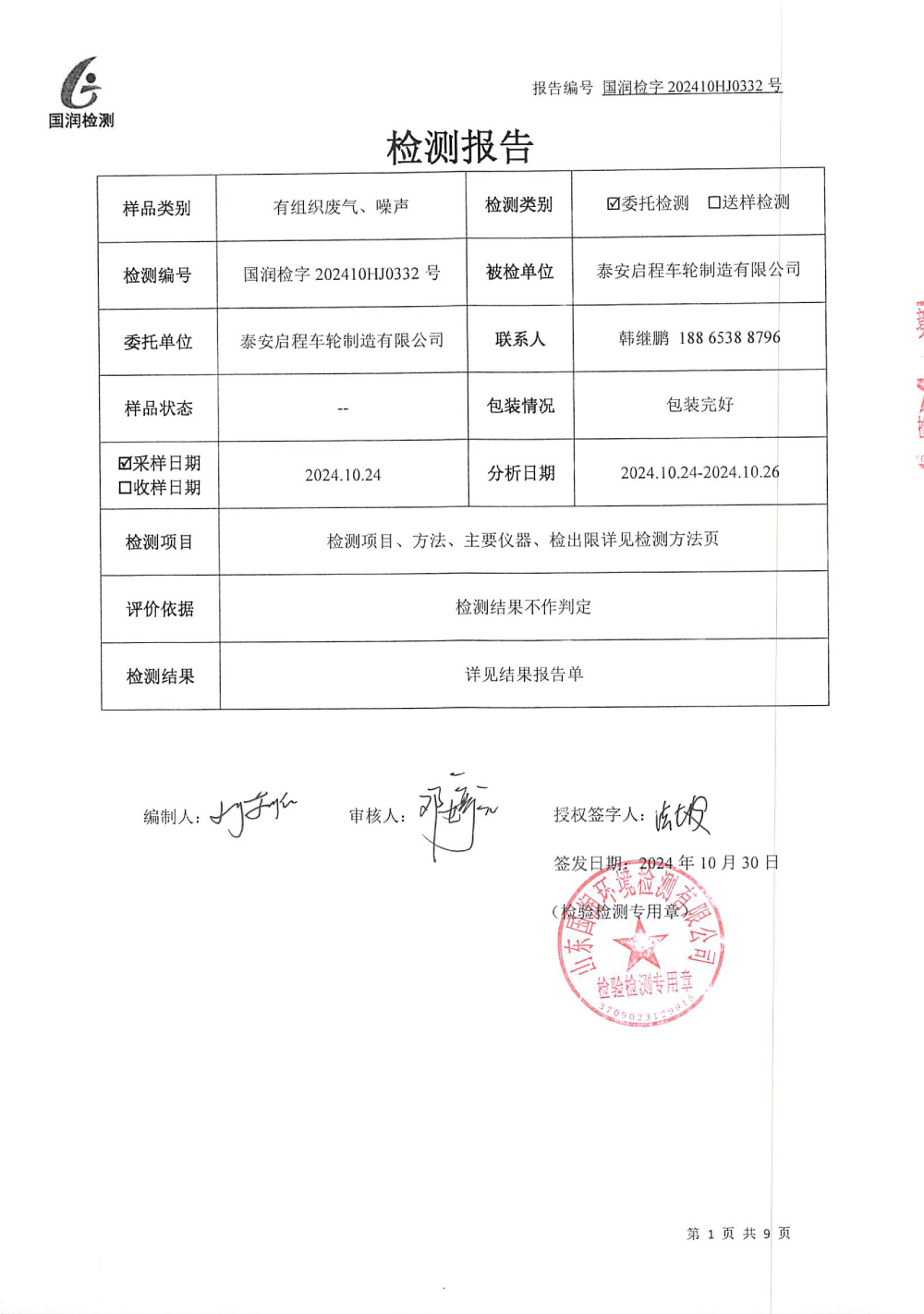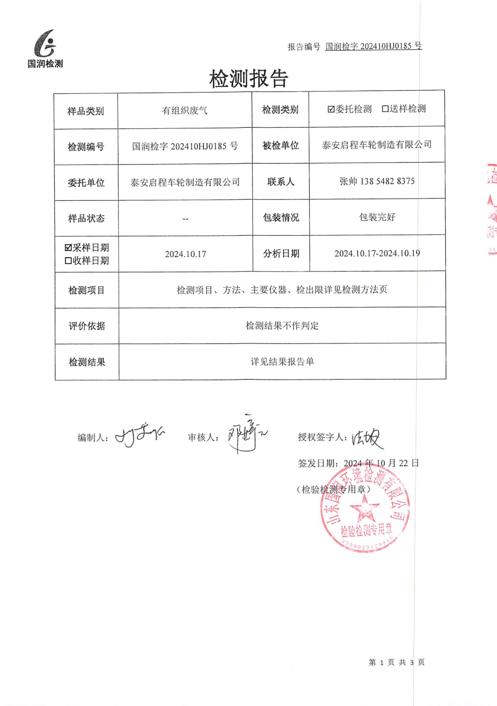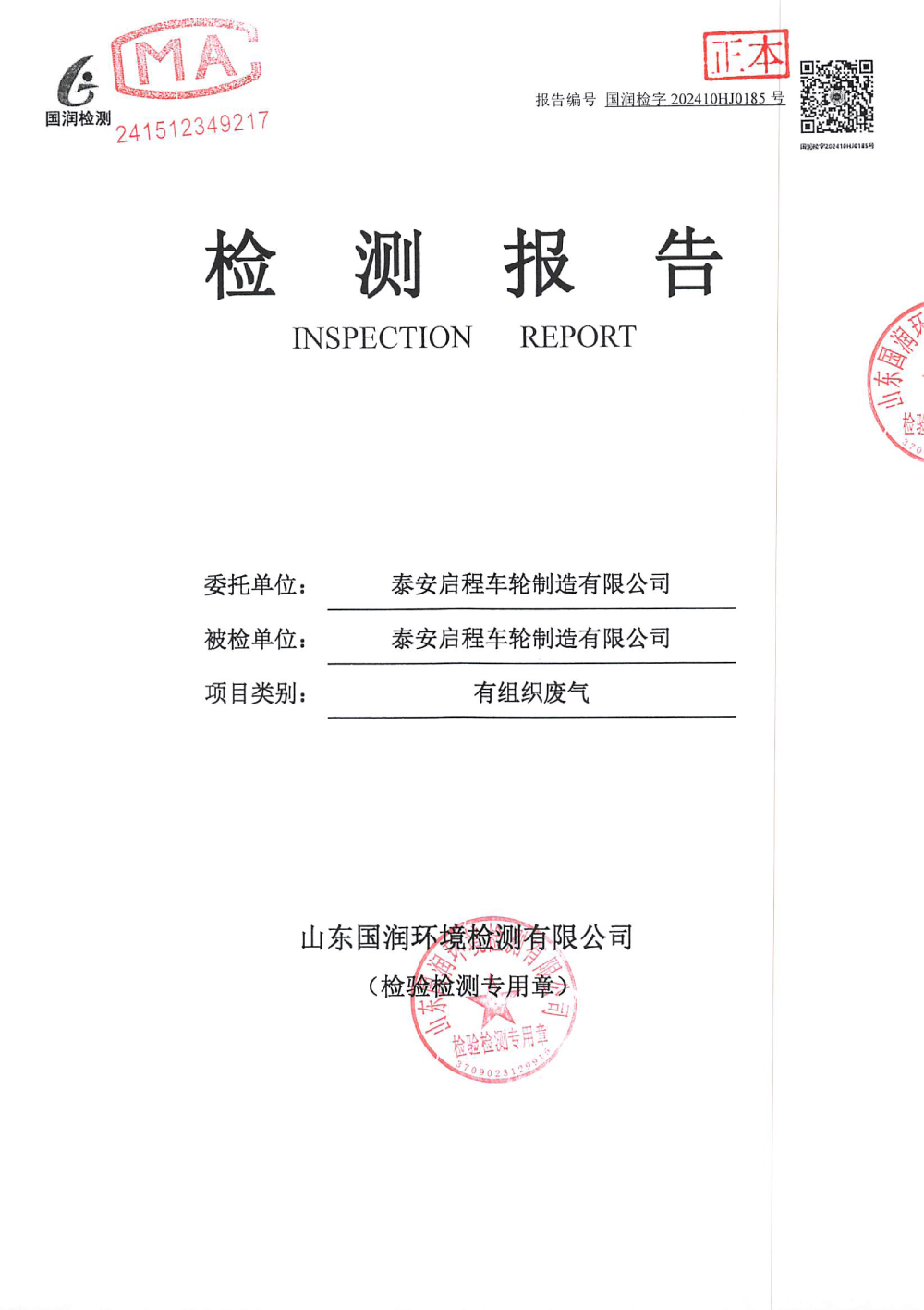 泰安啟程車輪制造有限公司2024年10月份環(huán)境污染物排放檢測報告