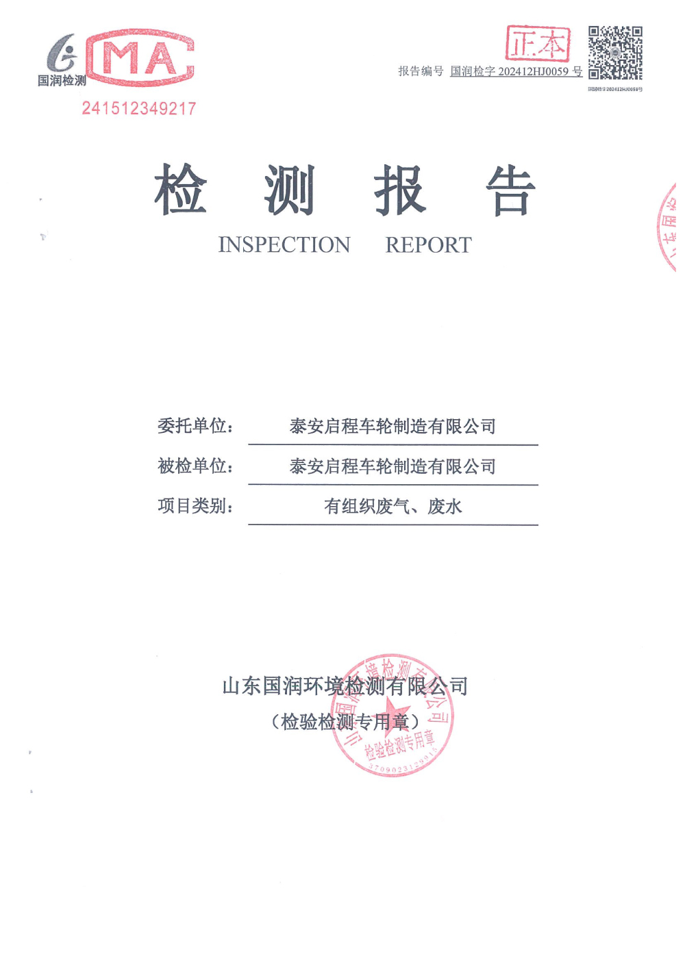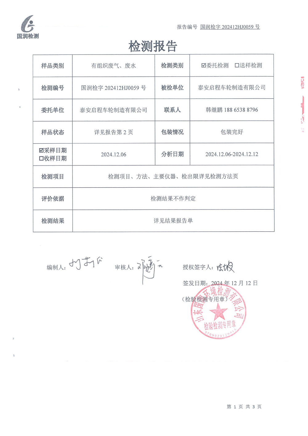 泰安啟程車(chē)輪制造有限公司2024年12月份環(huán)境污染物排放檢測(cè)報(bào)告