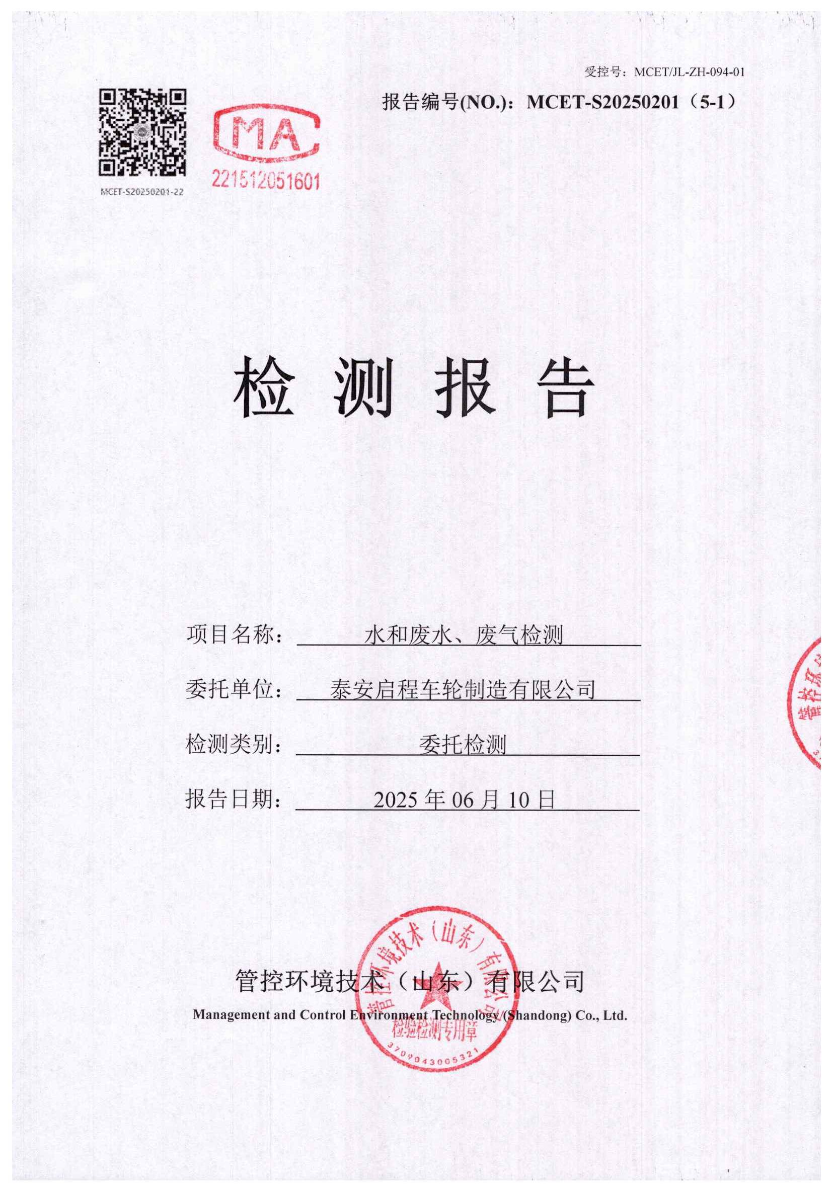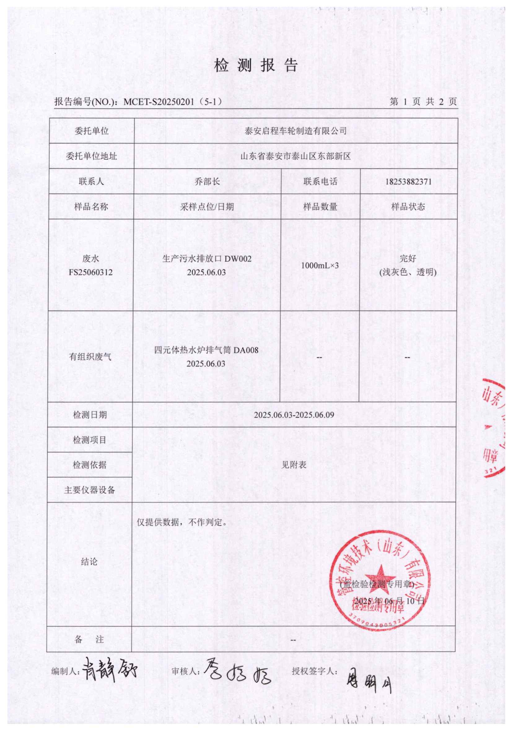 泰安啟程車(chē)輪制造有限公司2025年6月份環(huán)境污染物排放檢測(cè)報(bào)告