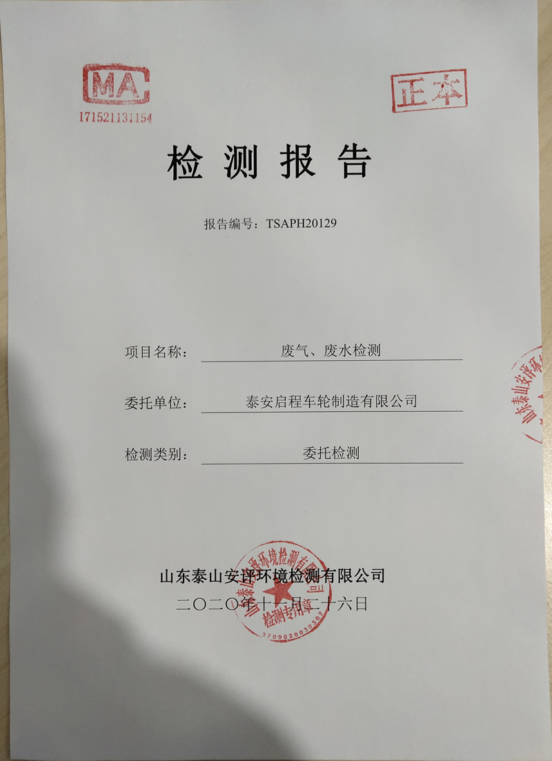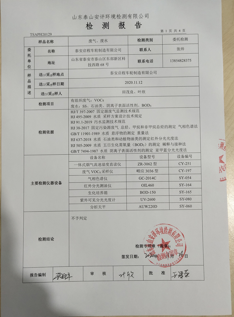 泰安啟程車輪制造有限公司2020年11月份環(huán)境污染物排放檢測(cè)報(bào)告