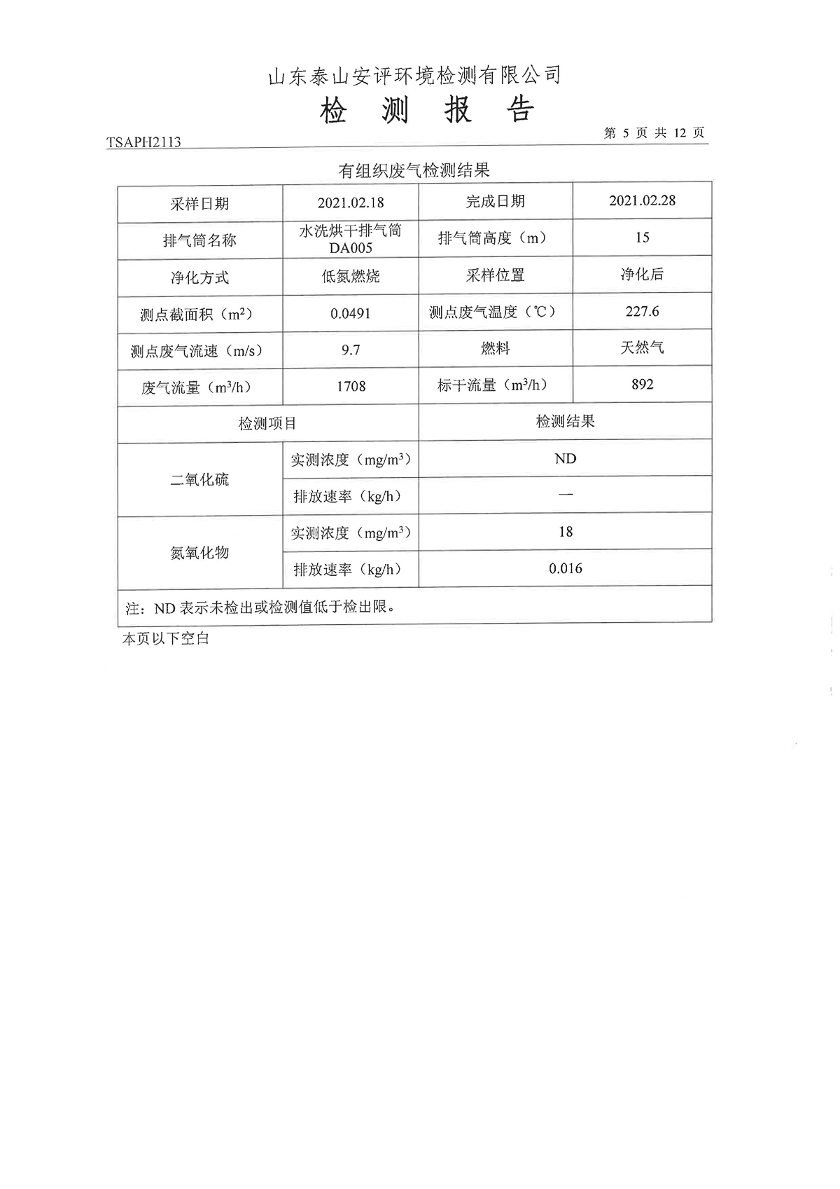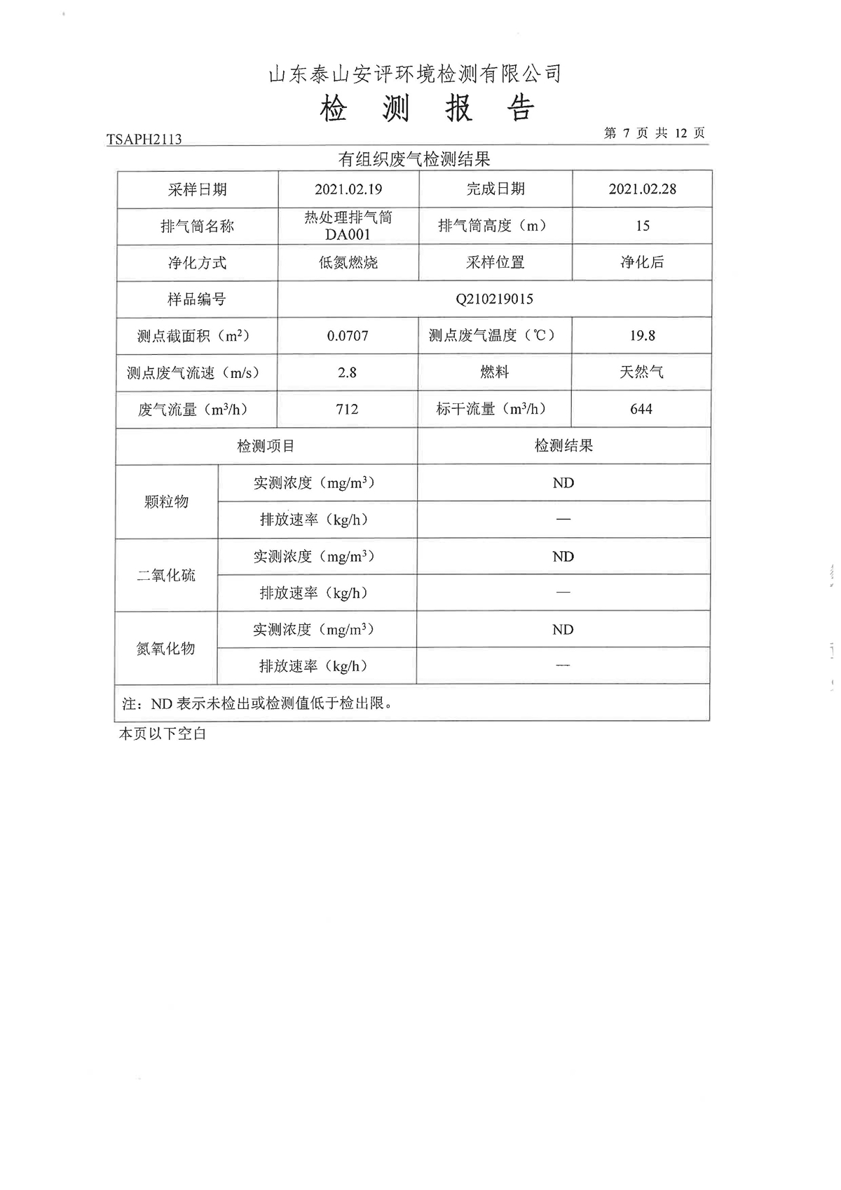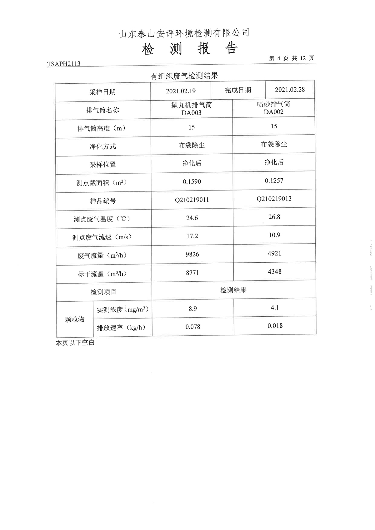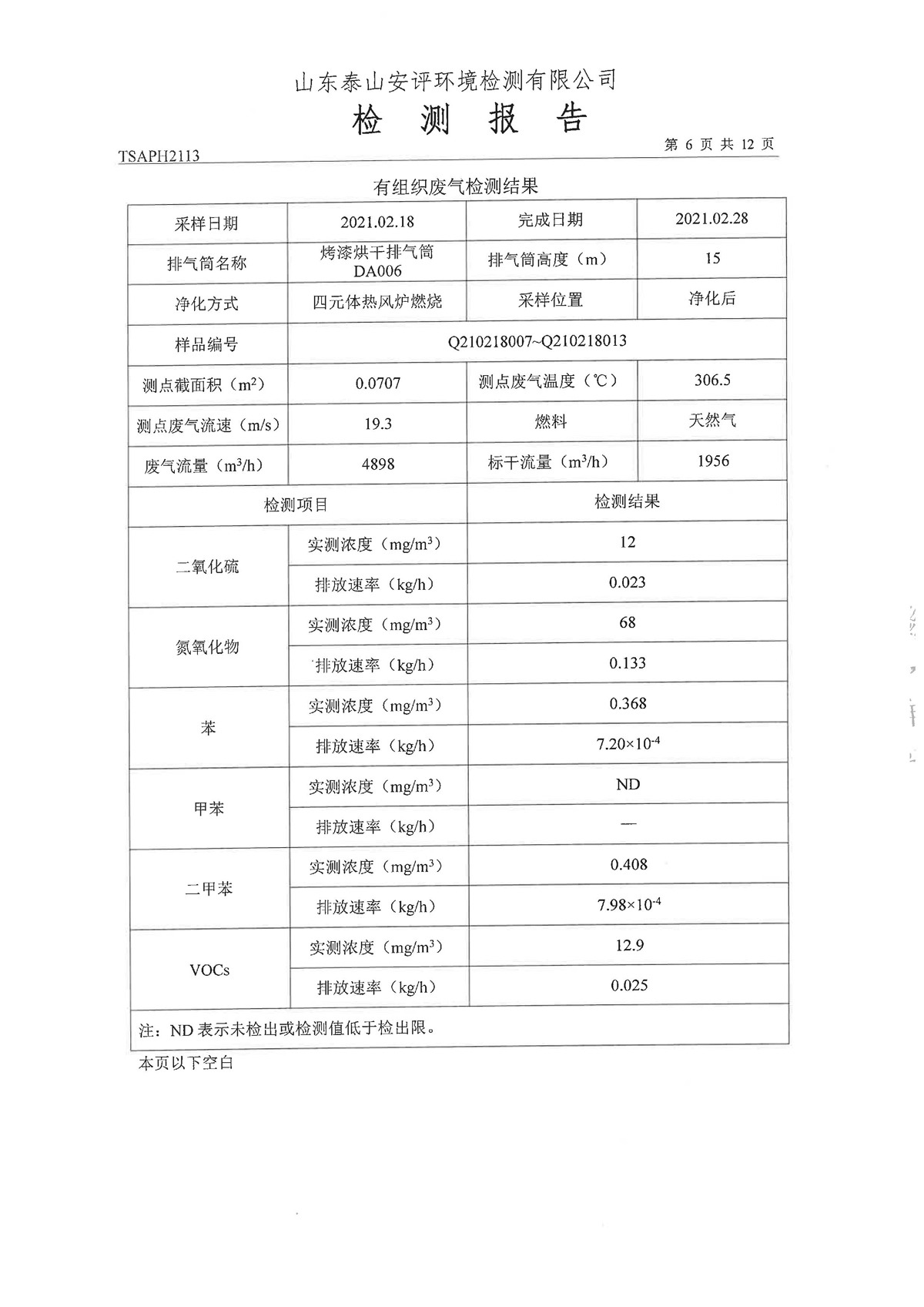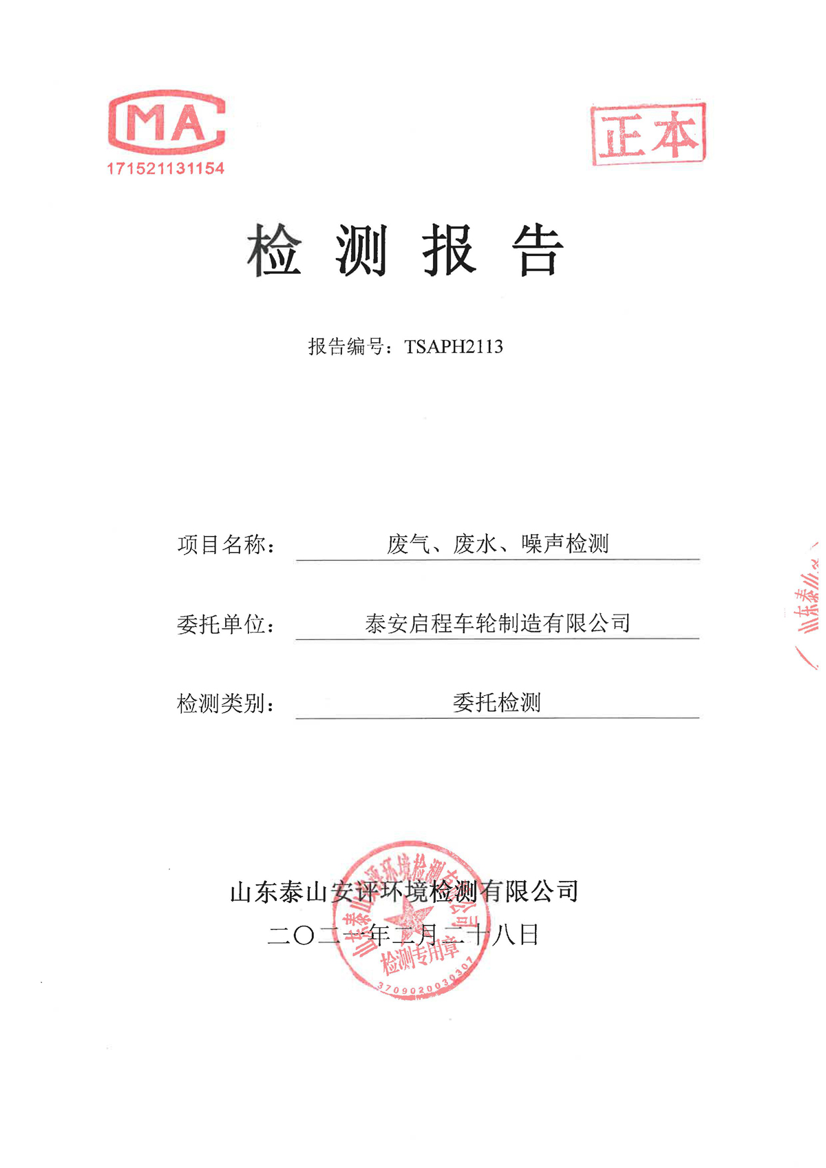 泰安啟程車(chē)輪制造有限公司2021年2月份環(huán)境污染物排放檢測(cè)報(bào)告