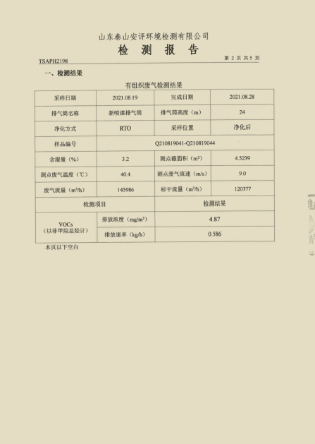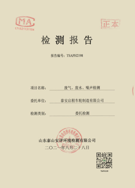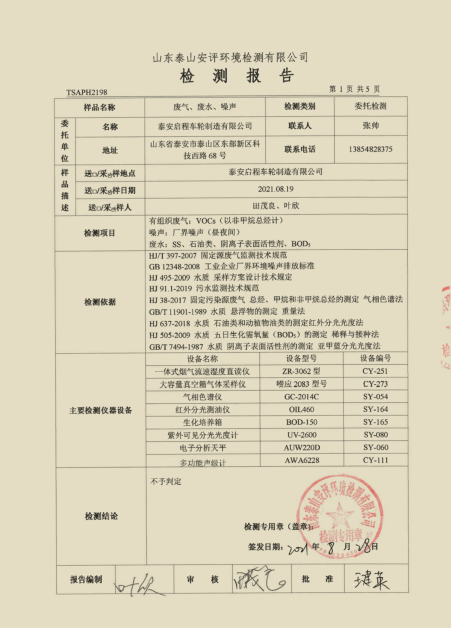 泰安啟程車輪制造有限公司2021年8月份環(huán)境污染物排放檢測(cè)報(bào)告