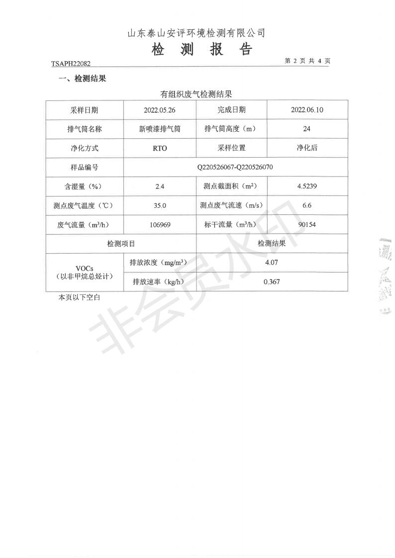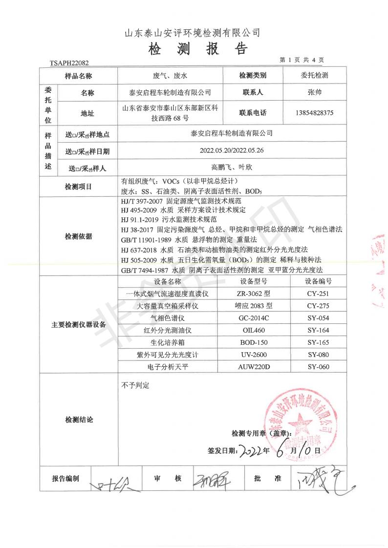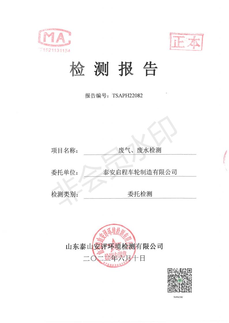 泰安啟程車輪制造有限公司2022年5月份環(huán)境污染物排放檢測(cè)報(bào)告