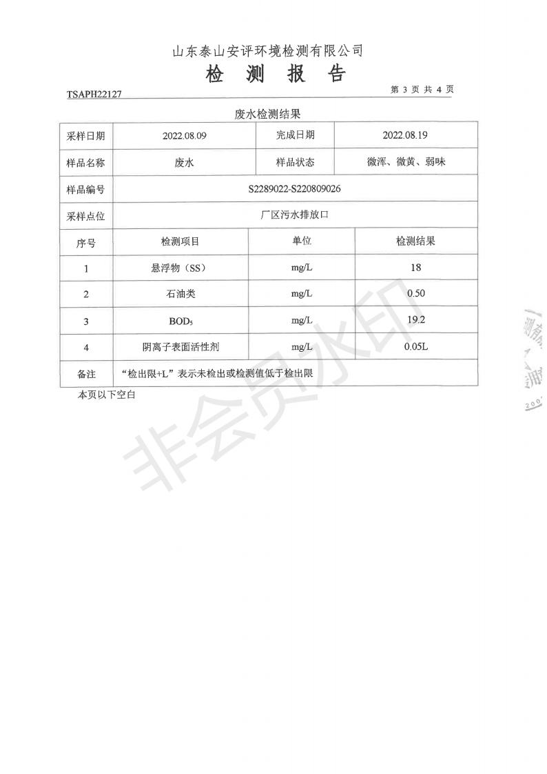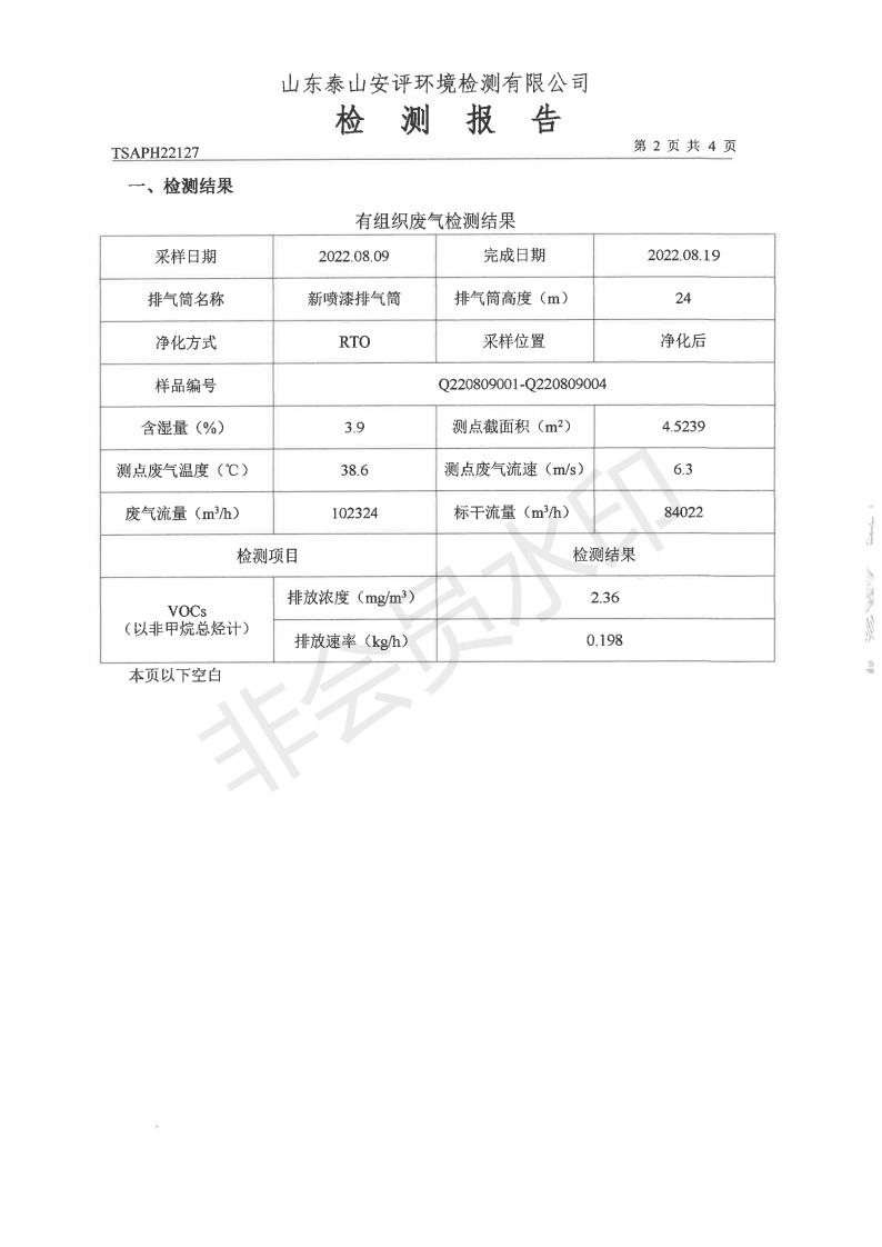泰安啟程車輪制造有限公司2022年8月份環(huán)境污染物排放檢測報告
