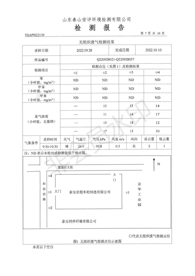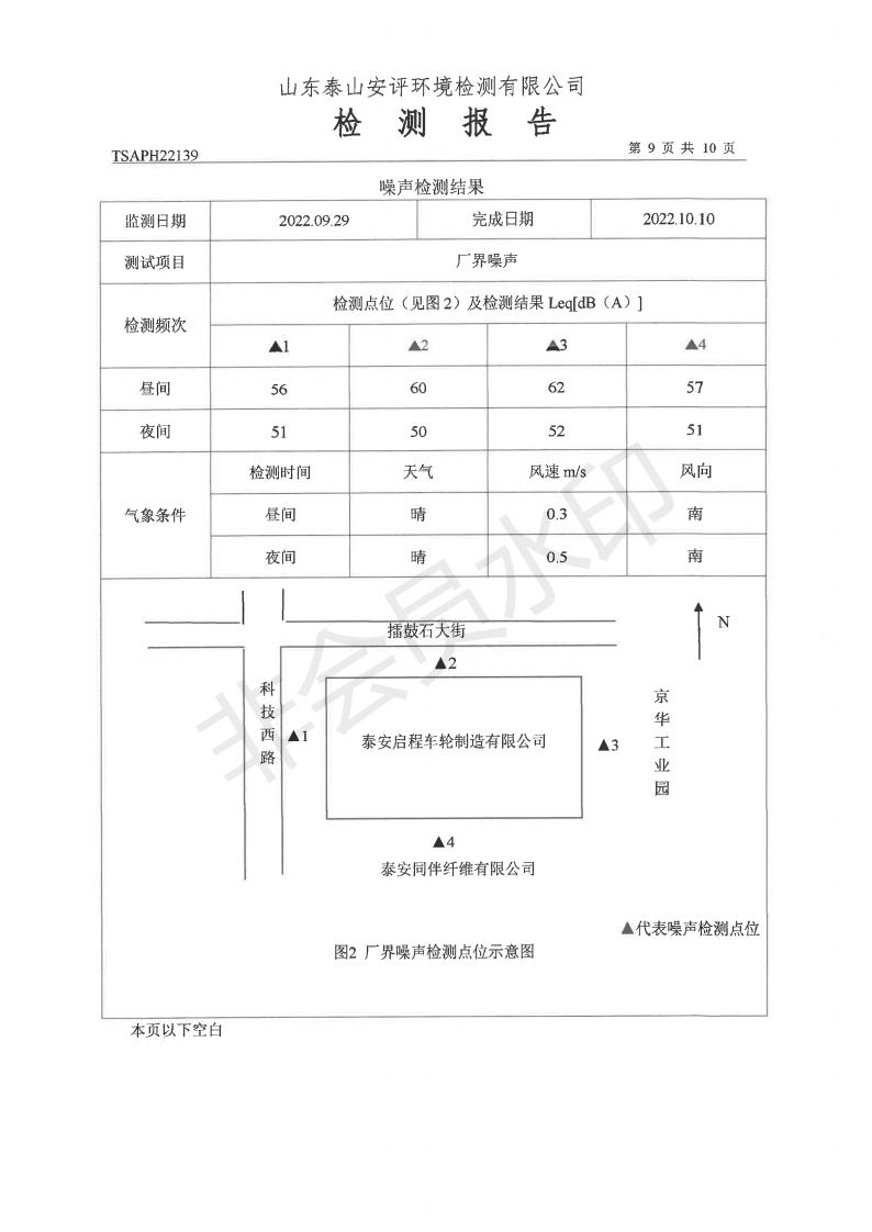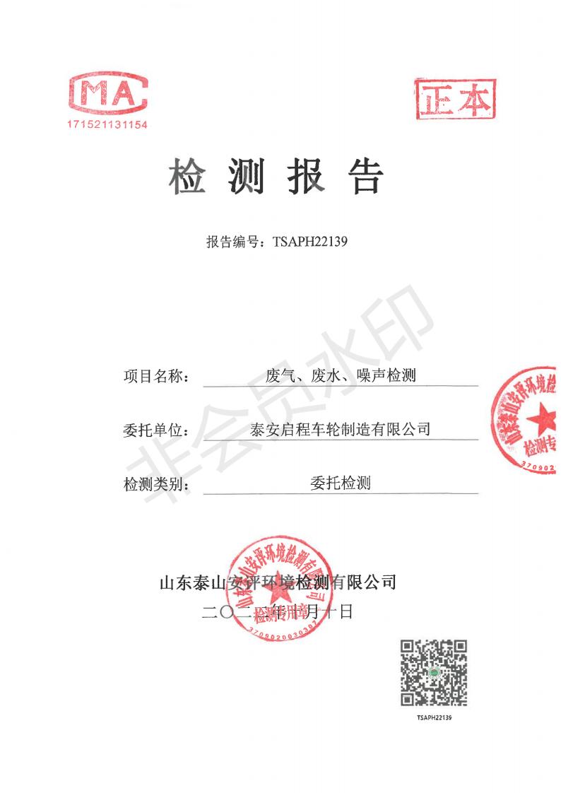泰安啟程車輪制造有限公司2022年9月份環(huán)境污染物排放檢測(cè)報(bào)告