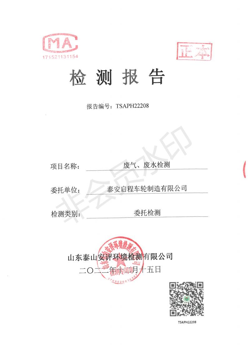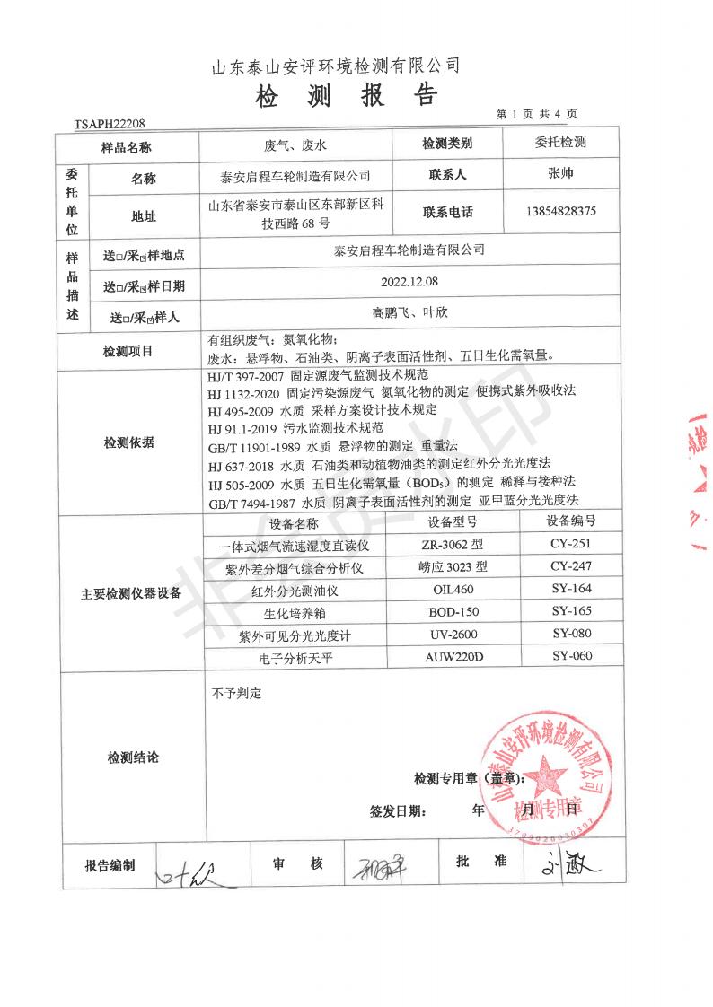 泰安啟程車輪制造有限公司2022年12月份環(huán)境污染物排放檢測(cè)報(bào)告