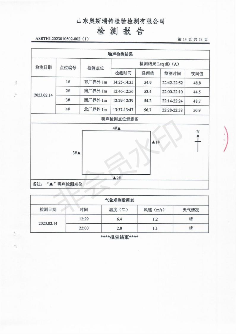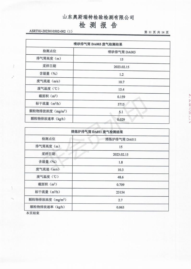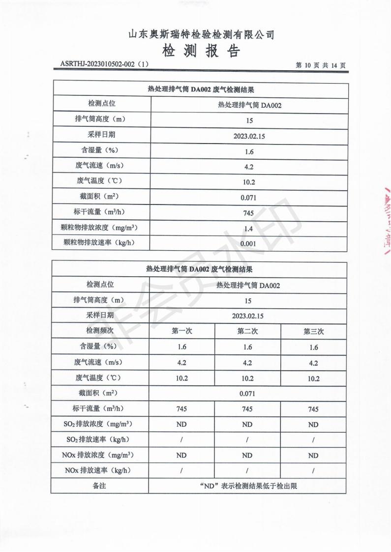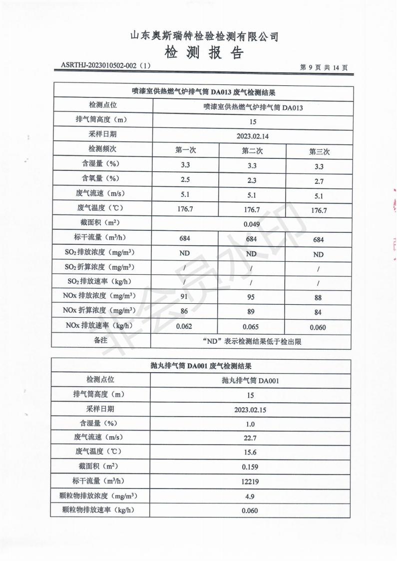 泰安啟程車輪制造有限公司2023年2月份環(huán)境污染物排放檢測報告