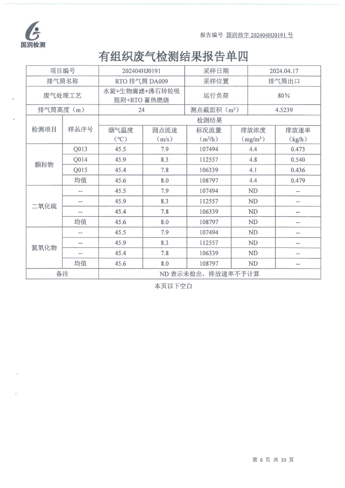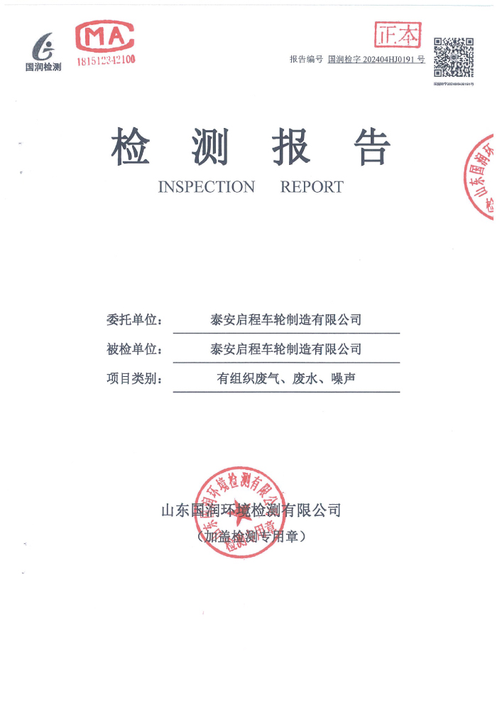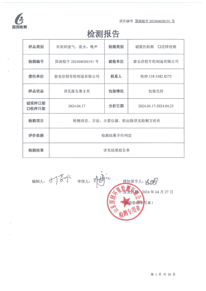 泰安啟程車輪制造有限公司2024年4月份環(huán)境污染物排放檢測(cè)報(bào)告