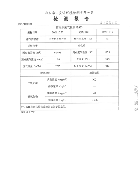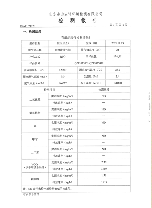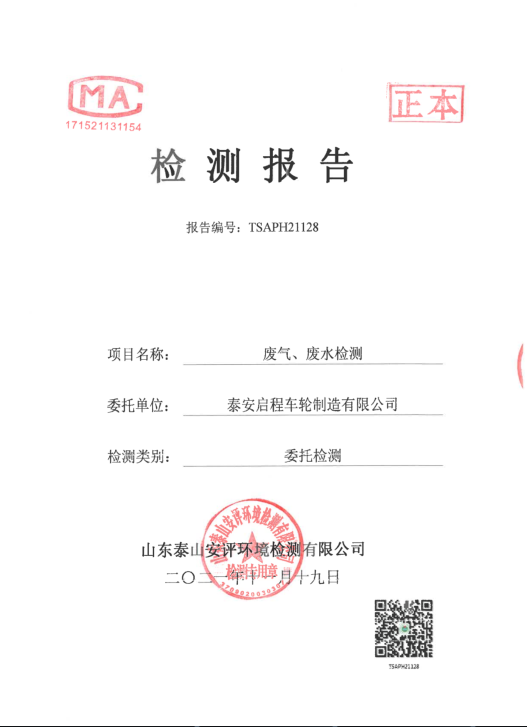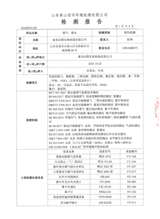 泰安啟程車輪制造有限公司2021年10月份環(huán)境污染物排放檢測(cè)報(bào)告