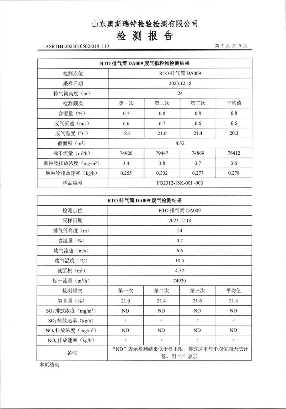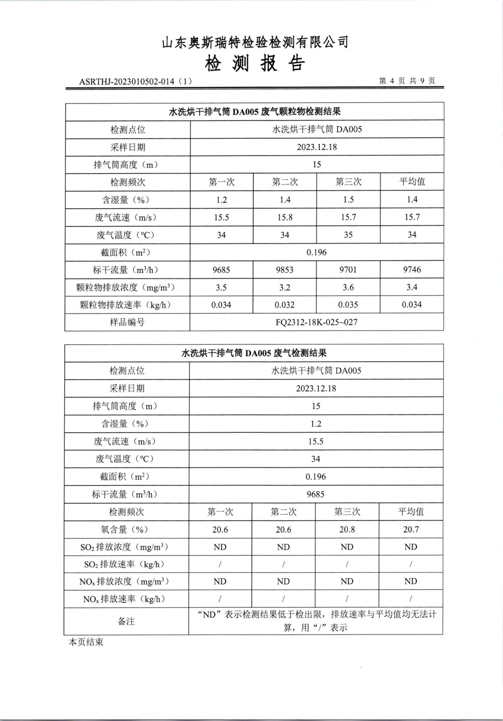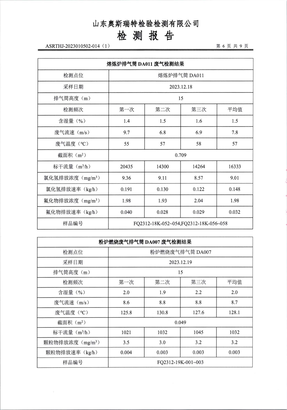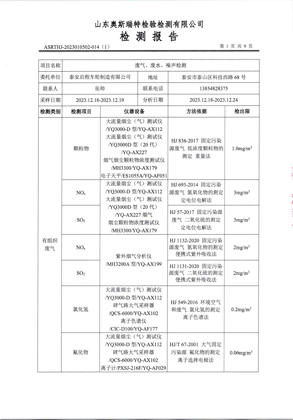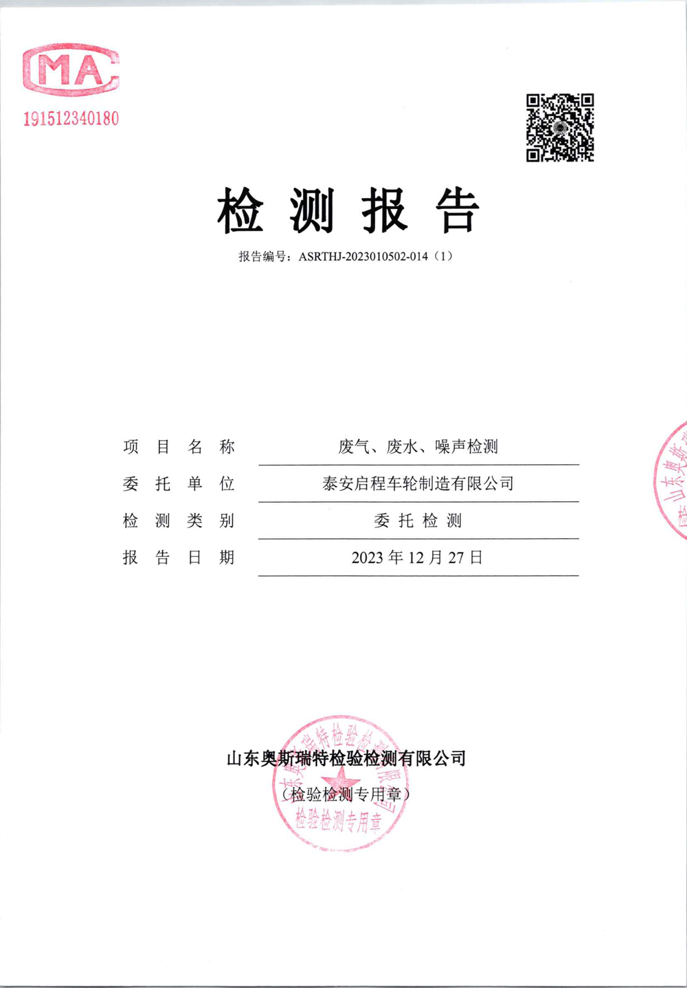 泰安啟程車輪制造有限公司2023年12月份環(huán)境污染物排放檢測報告