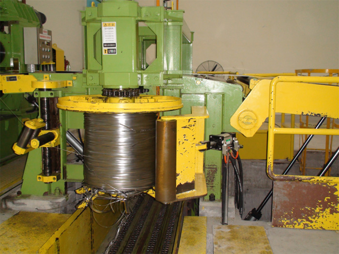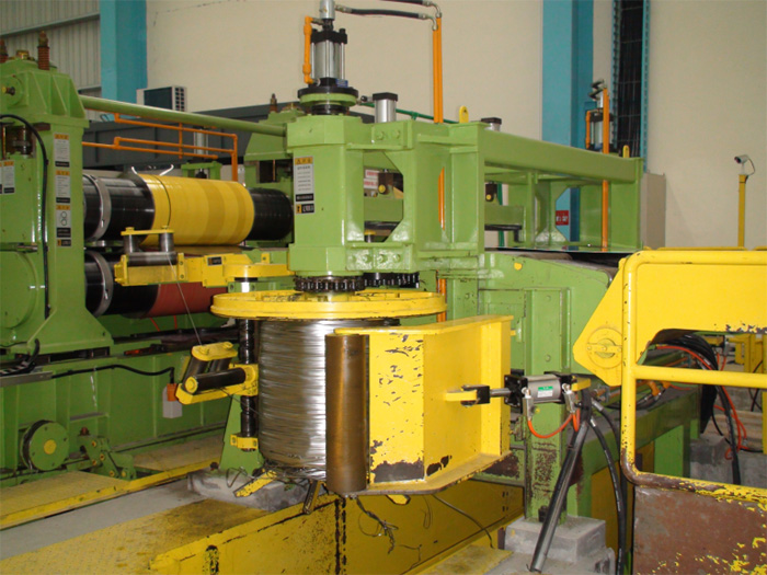 雙邊馬達(dá)驅(qū)動垂直梭動卷取式廢邊卷取機(jī)由電機(jī)及減速傳動機(jī)構(gòu)、轉(zhuǎn)盤式卷取機(jī)構(gòu),液壓漲縮機(jī)構(gòu)組成。廢邊卷取機(jī)對縱剪切下的廢邊進(jìn)行收卷。張力卷取機(jī)配置在機(jī)組兩側(cè),采用電機(jī)驅(qū)動與主速度同步。